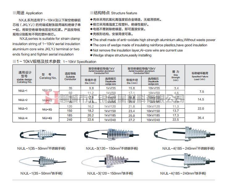 耐張線夾 NXJL系列耐張線夾 NXJL系列楔型絕緣耐張線夾 耐張線夾-鋁絞線架空絕緣電纜用